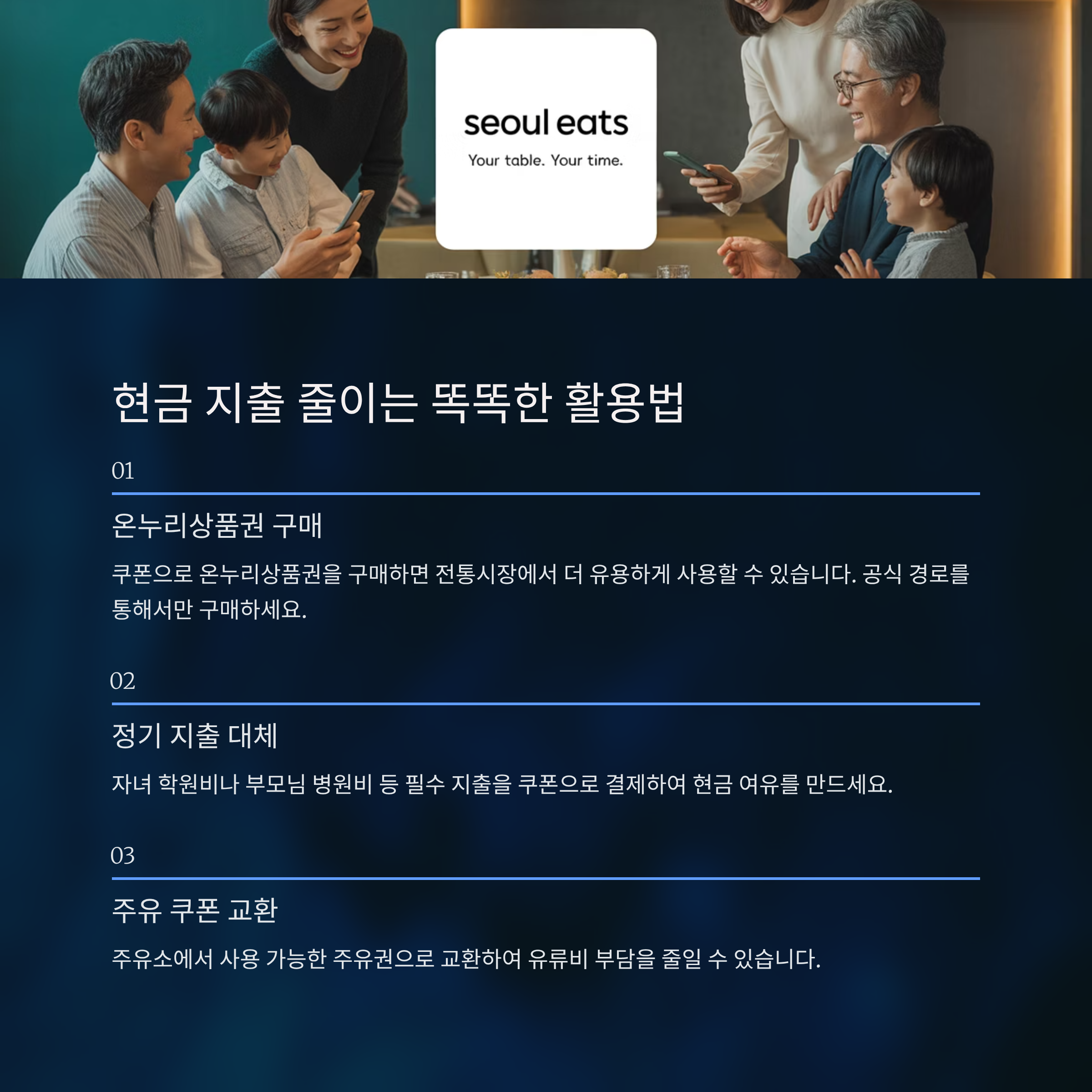둘째, 정기적으로 지출되는 비용을 쿠폰으로 대신하는 거예요. 예를 들어, 자녀 학원비나 부모님 병원비를 쿠폰으로 결제하는 방법이 있죠. 이렇게 하면 원래 현금으로 나갈 지출을 쿠폰으로 대체하게 되어 그만큼 현금 여유가 생기는 효과가 있어요.